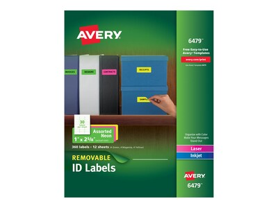 Free Downloadable Blank Templates | Avery Find the Right Template to print your Avery Product. Labels. Business Cards. Cards. Name Tags & Badges. File Folder Labels. Binder, Dividers & Tabs. Rectangle Labels. Round Labels. Avery Removable Inkjet/Laser Labels, 1" x 2 5/8", White, 750 ... Customize your labels with free designs and templates at avery.com/templates and attach to supplies, containers, documents and more. Identification and color coding label. Dimensions: 1" x 2-5/8". White paper labels. Removable adhesive for residue free cleanup. Contains 30 labels per sheet with 750 labels per pack.